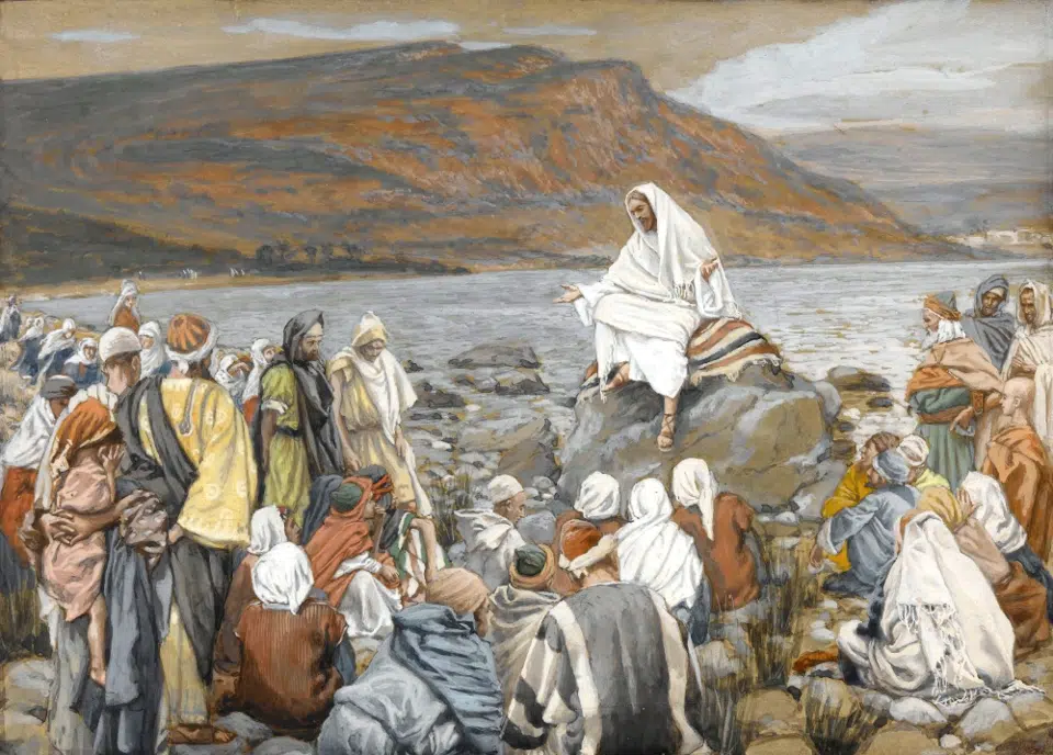 Jesús enseñando al pueblo a orillas del lago de Galilea. J. Tissot, 1891. Esta imagen es de dominio público, a través del Museo de Brooklyn: https://www.brooklynmuseum.org/opencollection/objects/4484.